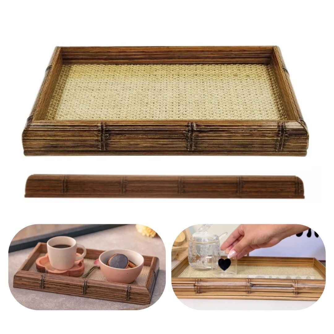 Material Sustentável e Durável: Fabricada em bambu, uma matéria-prima sustentável, a bandeja é uma escolha consciente e duradoura para a sua decoração.