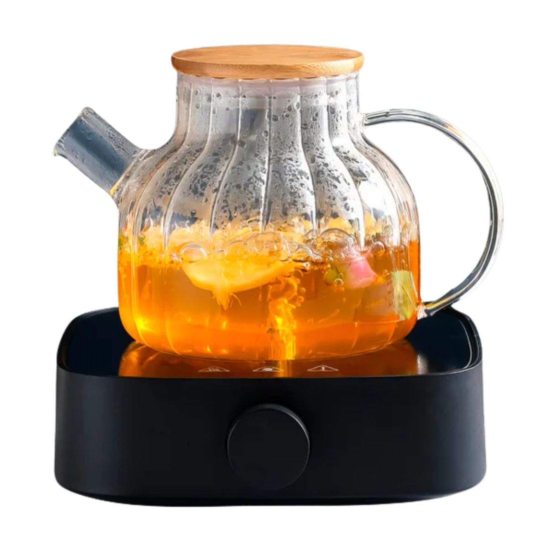 Descubra a elegância e funcionalidade da nossa Chaleira de Vidro Borossilicato de 1L. Com tampa de bambu e coador inox, ela é ideal para a infusão perfeita de chás. Compatível com fogões de chamas e indução, alterna entre quente e frio sem estourar.