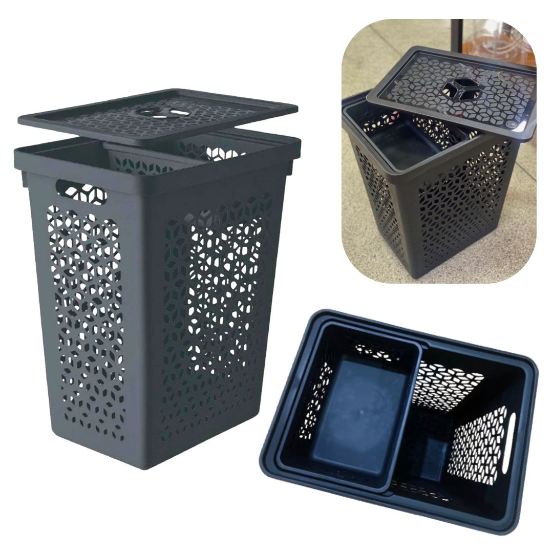 O conjunto de cestos multifuncionais da UZ são produtos indispensáveis para manter a organização do seu lar, o cesto grande com tampa de 55L é indicado para roupas sujas, já o cesto pequeno com capacidade para 6L é ideal para armazenar peças íntimas ou meias.