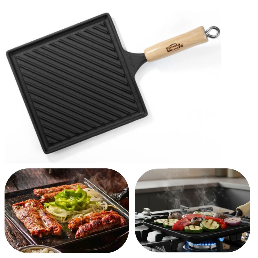 A Bifeteira Estriada Quadrada Cabo Madeira da Panela Mineira® é um produto moderno, prático e eficiente, que apresenta alto desempenho no preparo de diversas receitas. O calor distribuído por toda a superfície faz com que o alimento cozinhe de maneira uniforme, conservando suas propriedades e nutrientes, o que a torna excelente para selar, grelhar, fritar, cozinhar e mais.