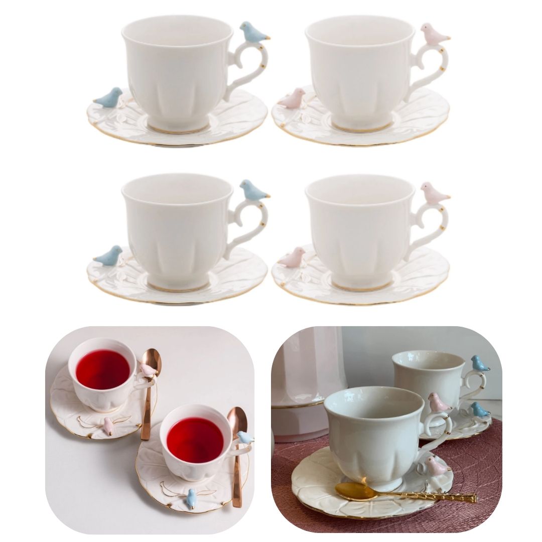 Descubra a magia da natureza em cada gole com o Conjunto 4 Xícaras de Chá de Porcelana Birds Wolff.