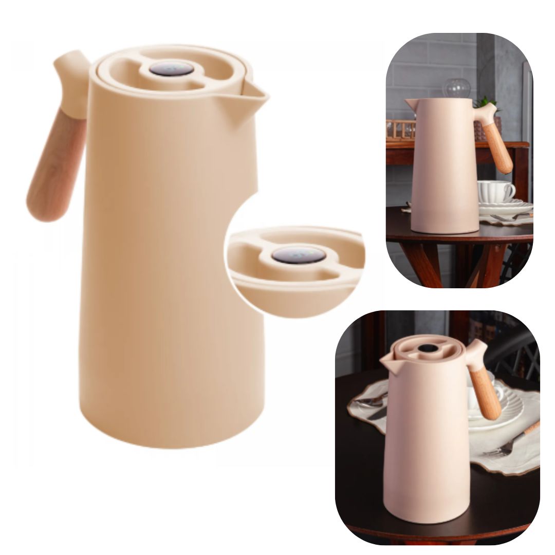 Com um design contemporâneo e sofisticado, esta garrafa térmica combina perfeitamente funcionalidade e estilo, adicionando um toque de elegância à sua mesa. Fabricada em plástico de alta qualidade, garante durabilidade e praticidade no uso diário, sendo ideal para servir chá, café, suco ou água em diversas ocasiões. O cabo de madeira não apenas confere um visual refinado, mas também facilita o transporte e manuseio da garrafa, proporcionando conforto e segurança.