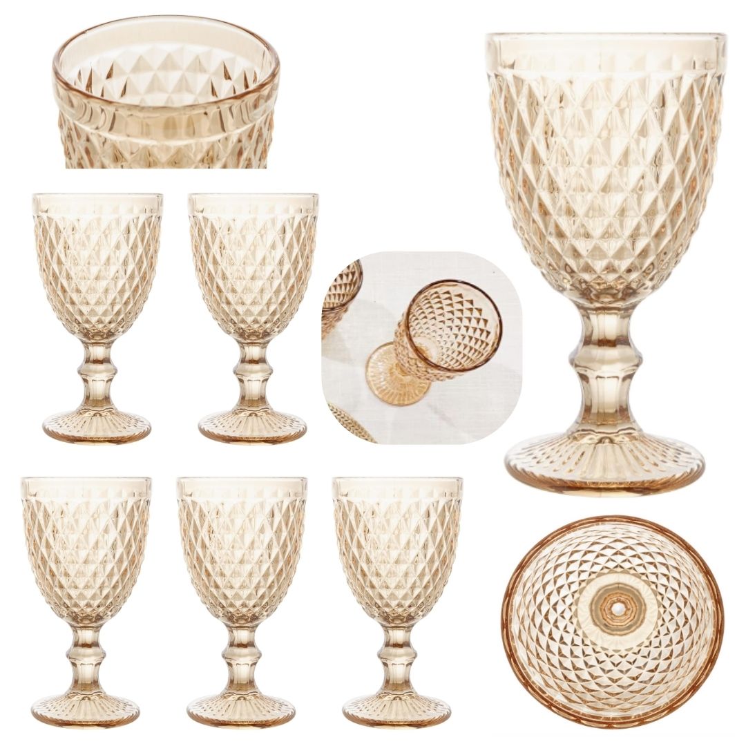 Elegância com Toque Tropical: Além de funcionais, as Taças de Água Bico de Abacaxi Âmbar Metalizado são peças de decoração refinadas, acrescentando um toque de natureza à sua mesa e tornando seus momentos ainda mais memoráveis.