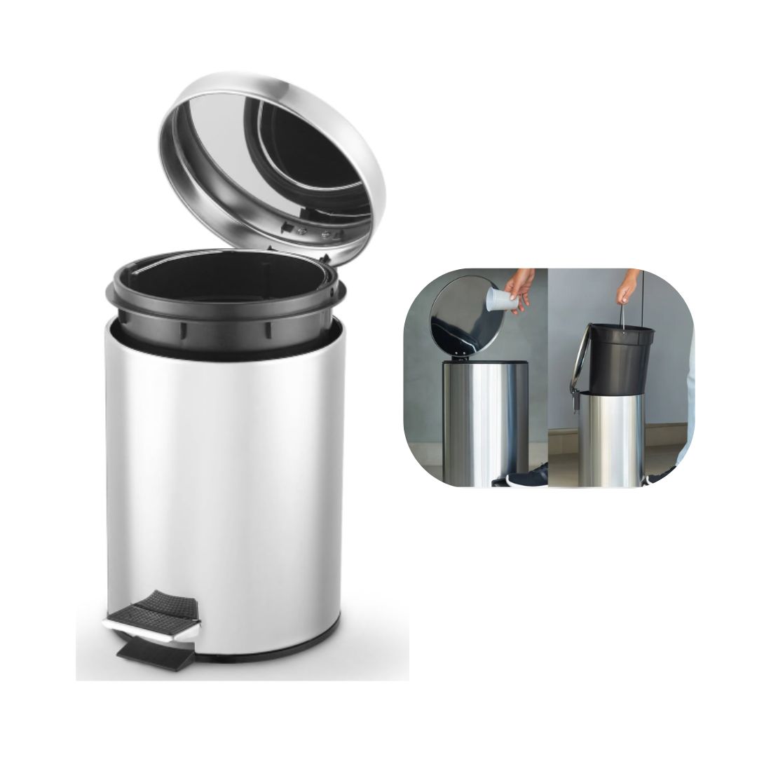 A Lixeira Powermaid Redonda de 5L em Aço Inox combina sofisticação e funcionalidade com um design contemporâneo. Possui um balde interno removível para fácil limpeza, aderência ventosa para estabilidade e um pedal durável em inox para operação suave e higiênica. Ideal para cozinha, banheiro ou escritório, é uma escolha elegante e prática para a gestão de resíduos.
