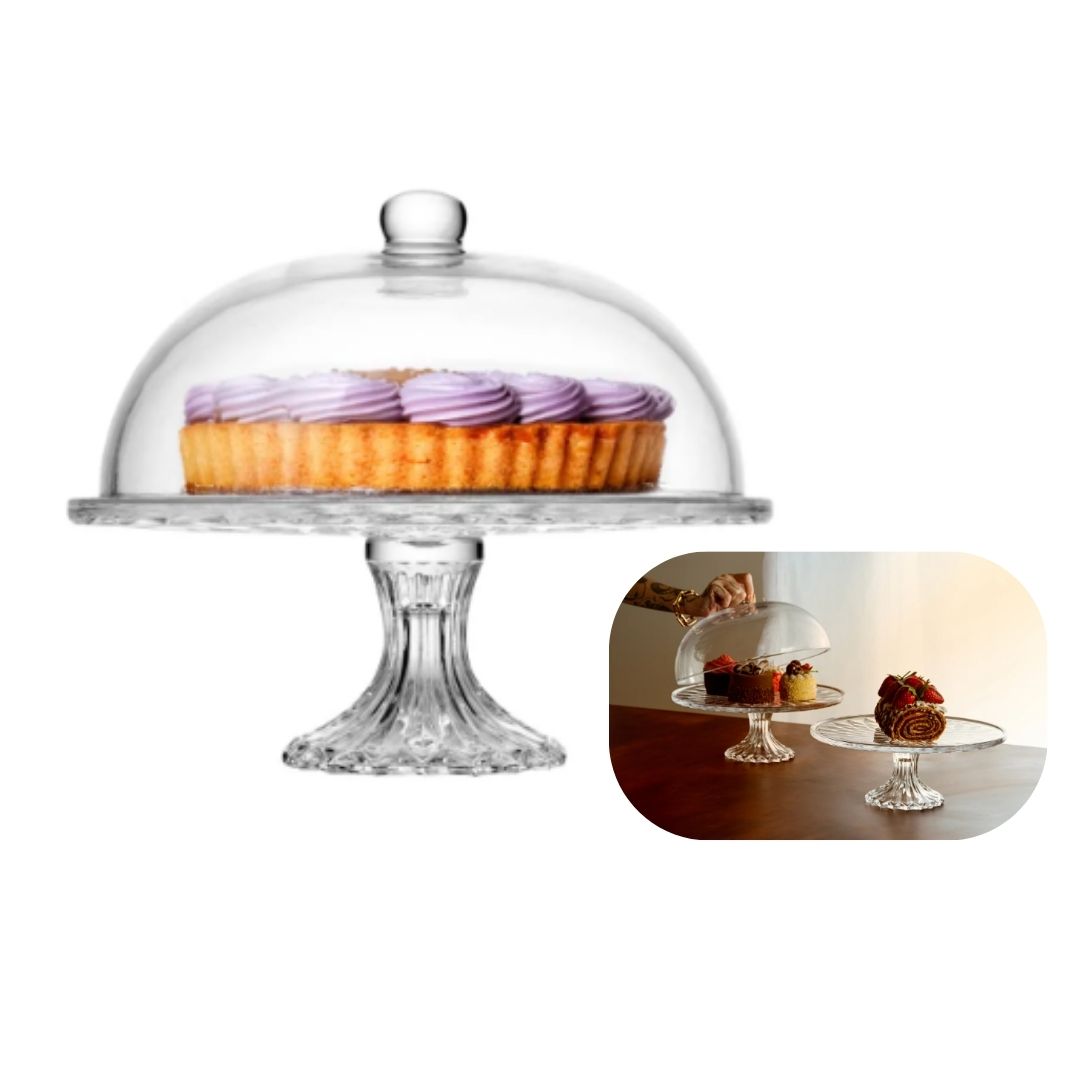 Seu pé elevado valoriza a apresentação de bolos, tortas e sobremesas, enquanto a tampa com pegador facilita o manuseio e protege os alimentos.